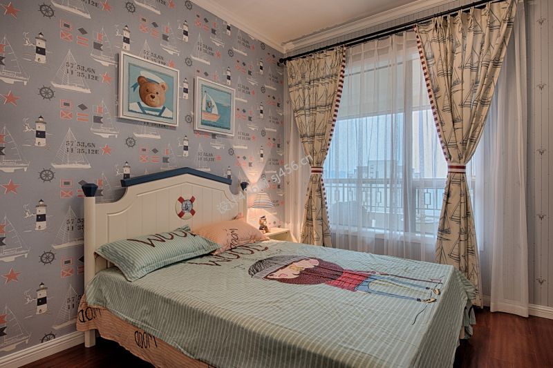 鸿海万科天空之城89平米美式风格装修案例风效果图