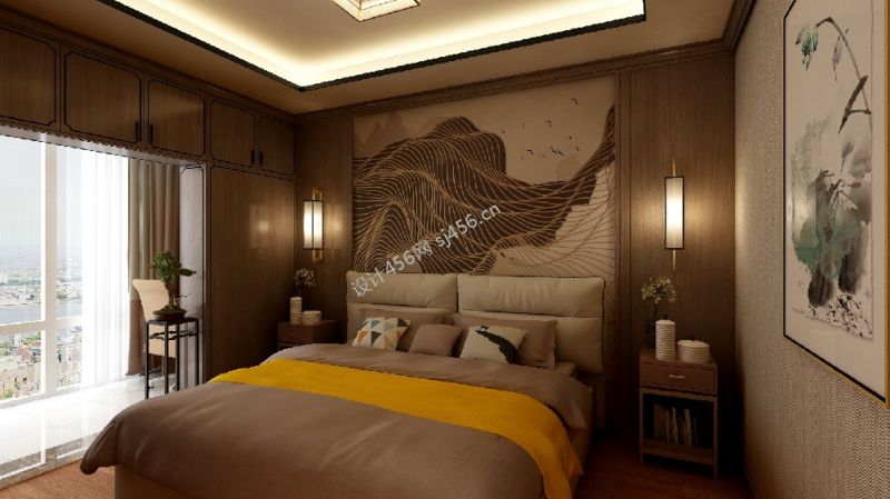 136平新中式风格卧室吊顶装修效果图