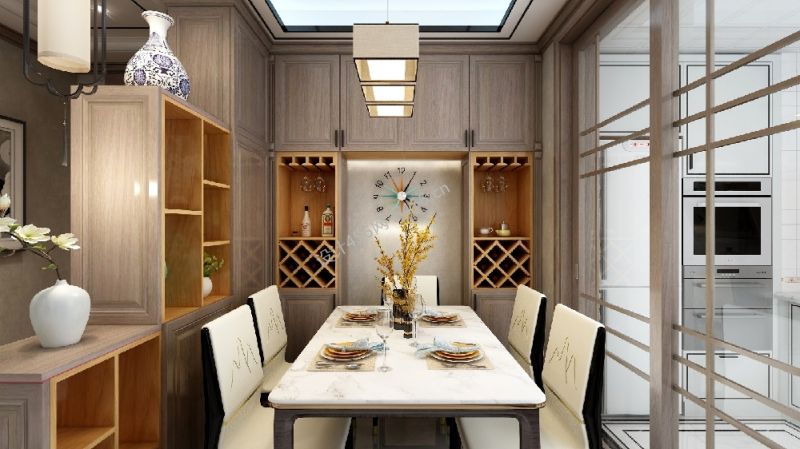 136平新中式风格餐厅吊灯装修效果图