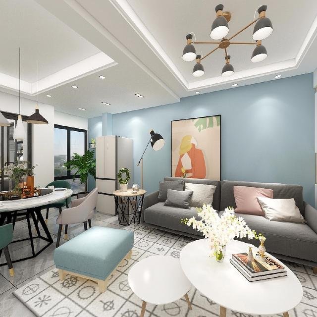 本案业主对于色彩有着浓烈的喜爱将“天空”放到了眼前,营造舒适而温馨居家氛围。