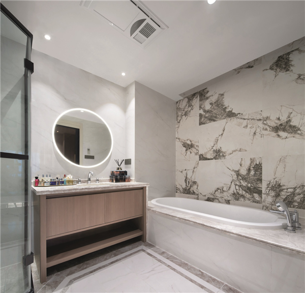 主卫空间素雅精致,当结束一天的奔波,舒服地泡上一个澡,躺在浴缸里闭上眼睛感受这一刻无比放松的时光,何尝又不是奢华的享受,但同时也是居住者每天可感受的日常。