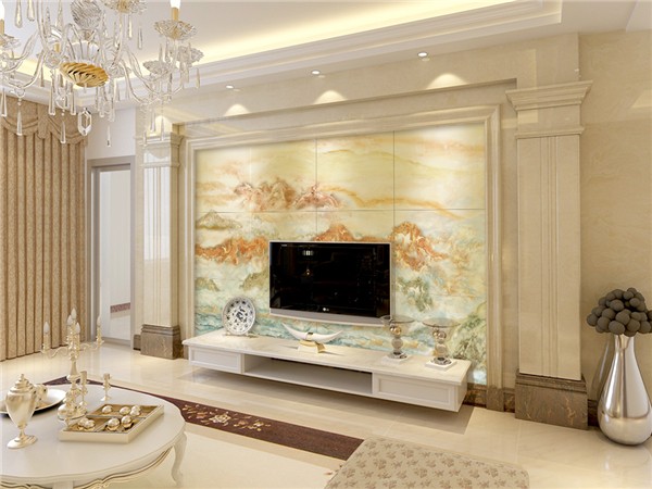 微晶石是一种比较高级的瓷砖类型,也是一种微晶玻璃复合板材。它色泽亮丽、纹理精美、奢华大气,用它来打造背景墙常常有镜面的效果,显得非常有档次。