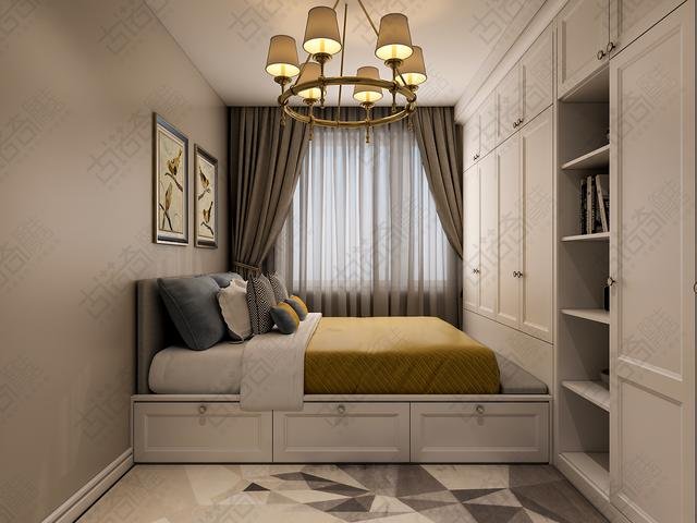 为了增加居室的储物场所,建议不要放过任何一个空白区。一些柜子,把东西都藏起来,利用空间来收纳比如定制一张榻榻米床,这样榻榻米下方可以有很多储物空间,东西收拾整齐了,空间看起来也变大了!床也选用那种带有抽屉的样式。