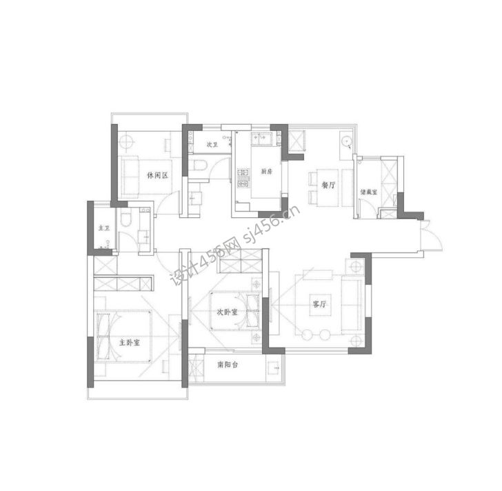 简约134.2平米三室两厅户型图装修效果图