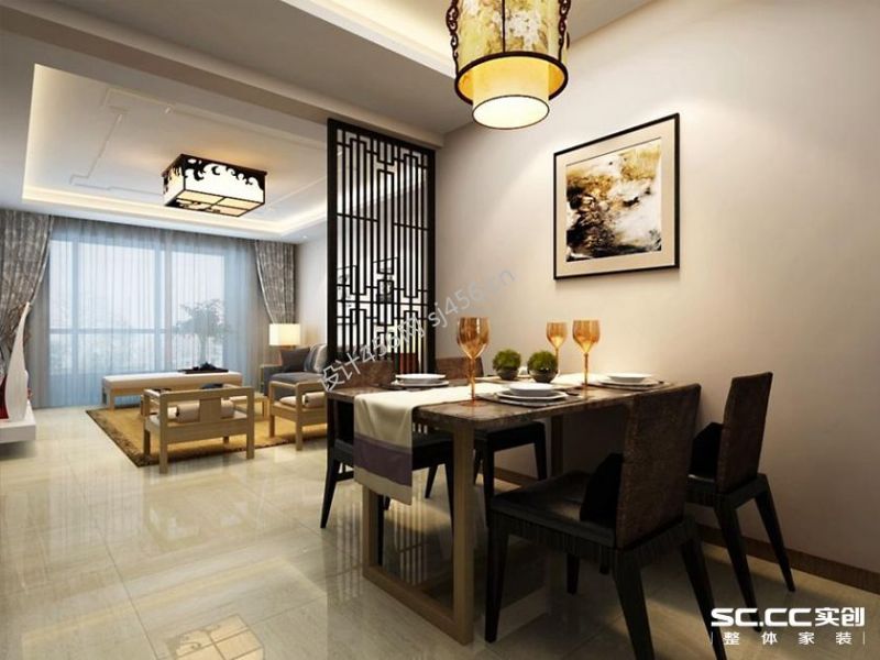 实创整体家装 莱蒙都会三居110平新中式风格装修案例