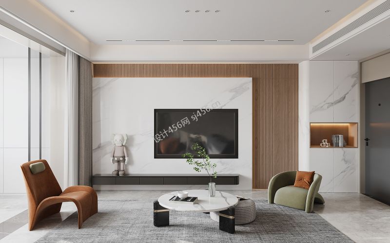 现代风198平米别墅客厅背景墙装修效果图