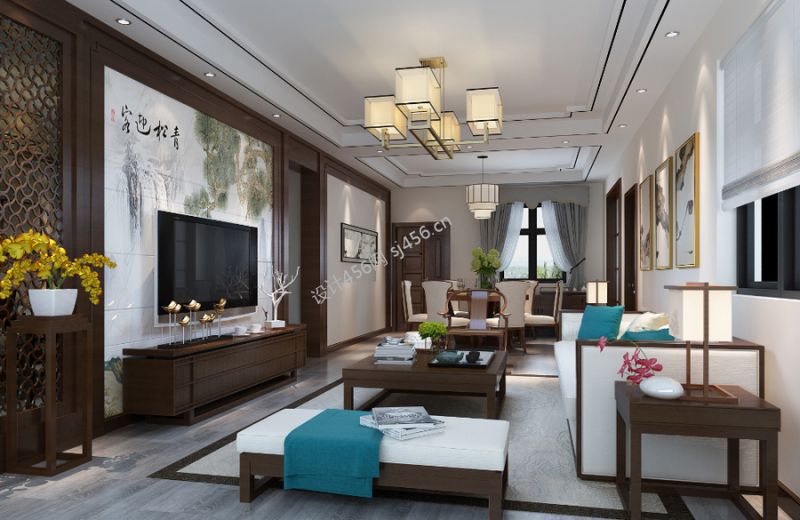 新建中心-中式风格152.9平米四居装修风效果图