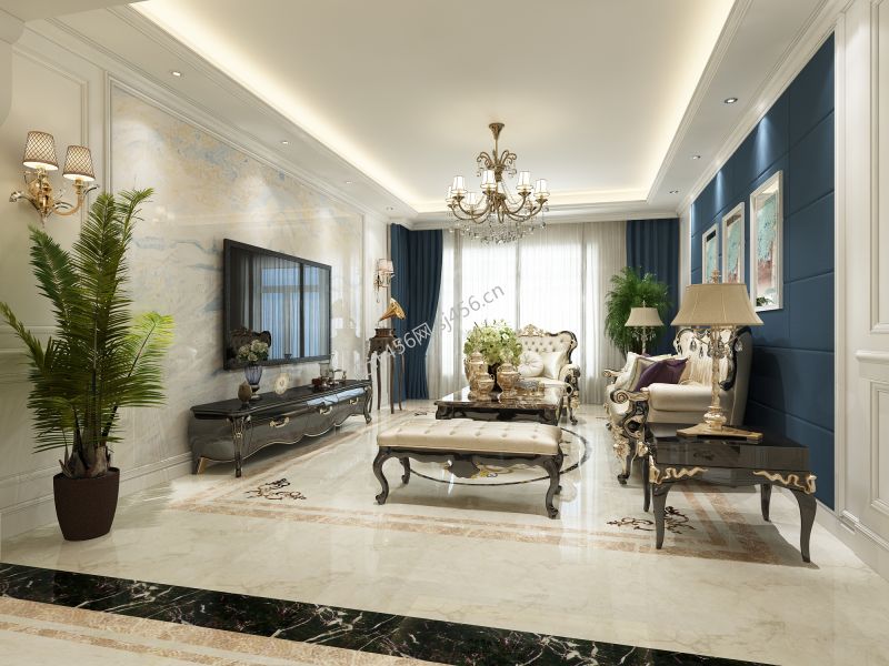 114平欧式风格客厅电视墙装修效果图