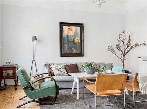 2.用流行色来装点空间。突出流行趋势,选择浅色系的家具,如白色、灰色、蓝色、棕色等自然色彩,结合自然风格的主题,设计出灵活的多功能家居空间,是简约风格的精髓。