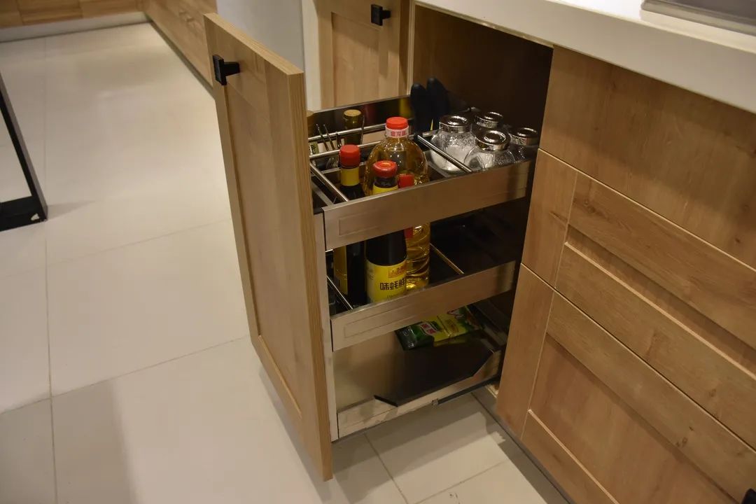 定制橱柜除了柜体、门板、台面以外,还要注意五金细节,比如门铰要选知名品牌的,不然后期门板容易掉或者开启不顺畅。