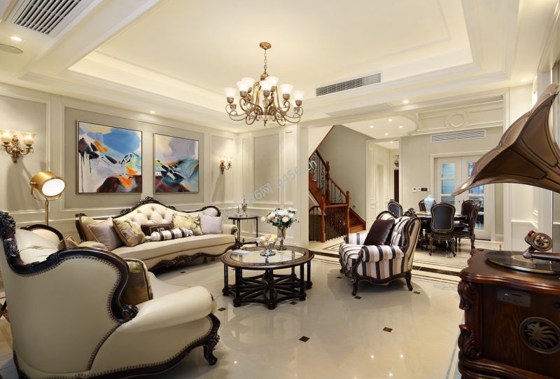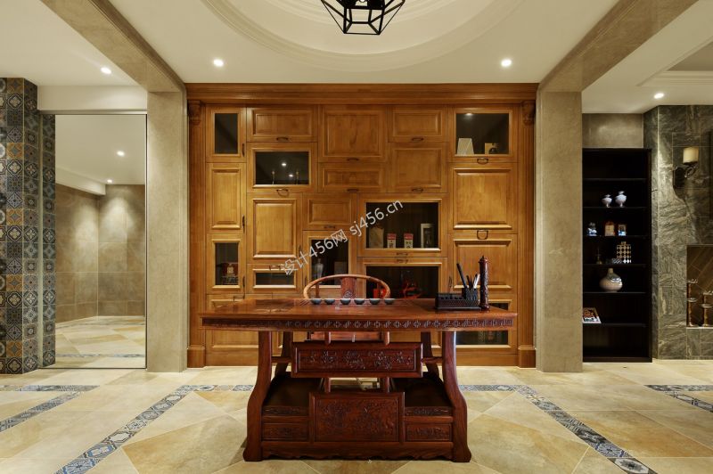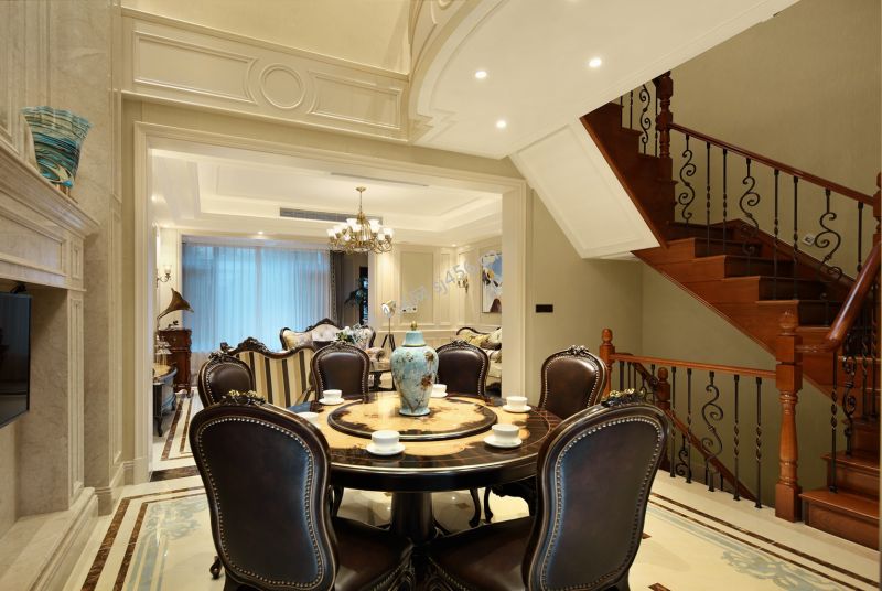 欧式风格180平米复式棋牌室背景墙装修实景图