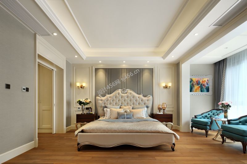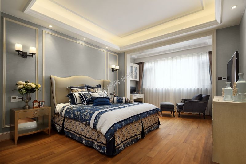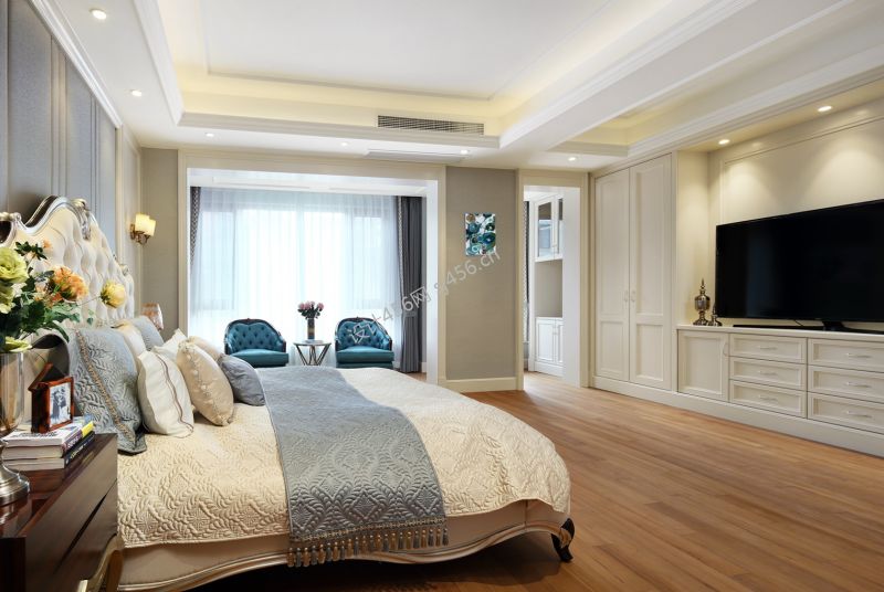 欧式风格180平米复式卧室电视组合柜装修实景图