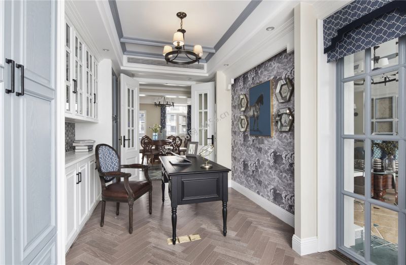 小美式风格150平米四居餐厅实木圆桌装修图片