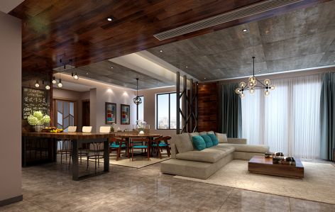 万科玖里工业风格225平米装修案例风效果图