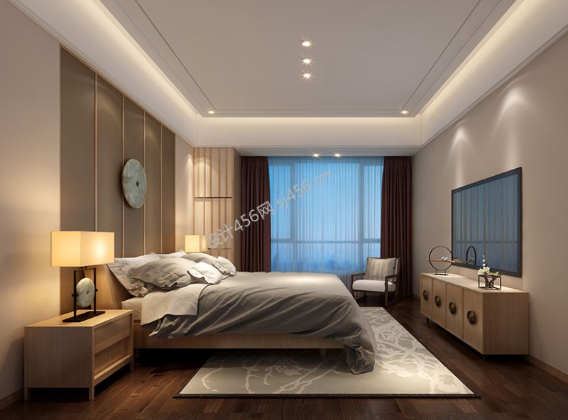 新中式风格220平米卧室窗帘装修图片