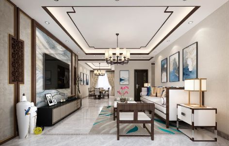 恒大悦龙台新中式风格152平米三居室装修效果图案例风效果图