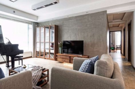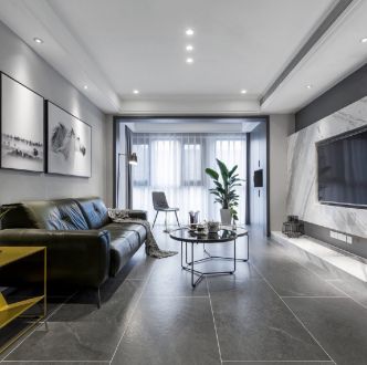 绿地悦滨江极简风格100平米二居室装修效果图案例风效果图