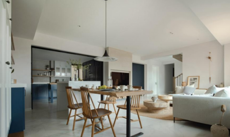 极简风格100平米二居室客厅餐厅一体化装修效果图