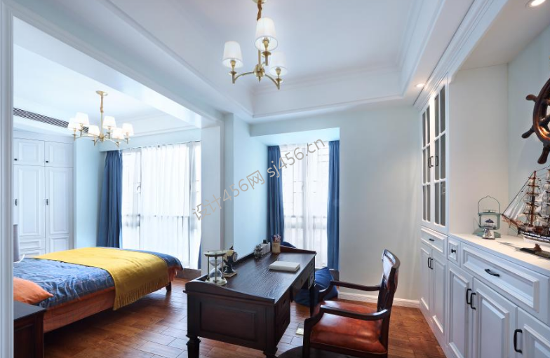 美式风格101平米卧室书房一体化装修效果图