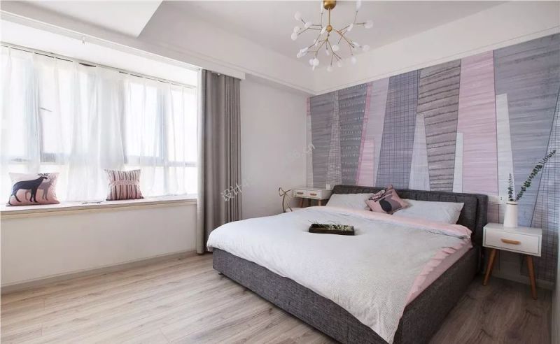 95平北欧风格卧室背景墙设计装修图片