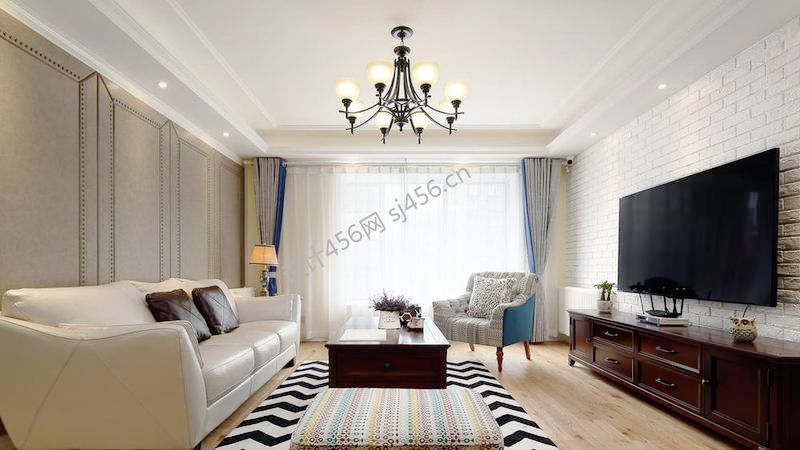 新力星塘湾102平美式风格装修案例风效果图
