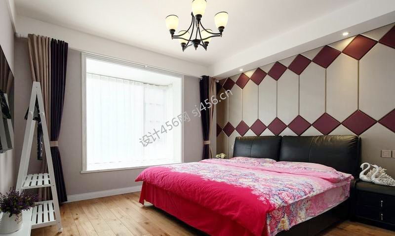 100平美式风格卧室背景墙装修设计效果图