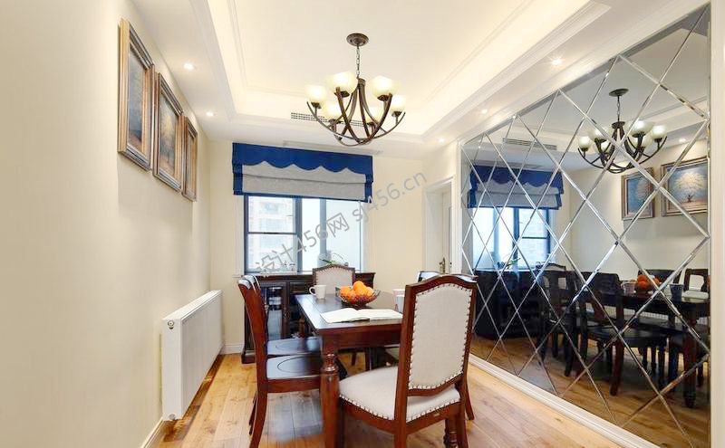 100平美式风格餐厅吊灯装修设计效果图