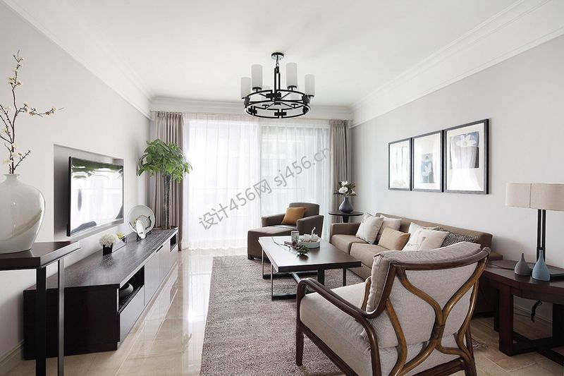 新力睿园105平三居室装修案例风效果图
