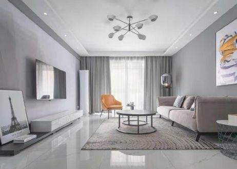 95平现代风格客厅窗帘装修设计效果图