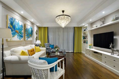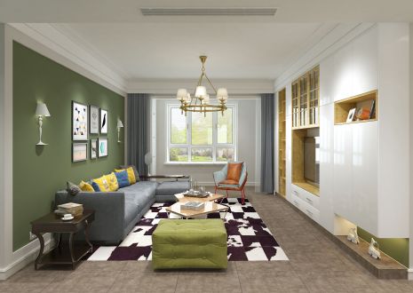 公园壹号138平美式风格三居室装修案例风效果图