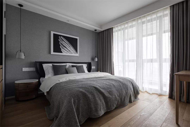高级灰会使卧室看起来平静和时尚,传递出简约大气之美,衬托出男人稳重而又坚毅的气质。和其他颜色搭配更能达到美观。