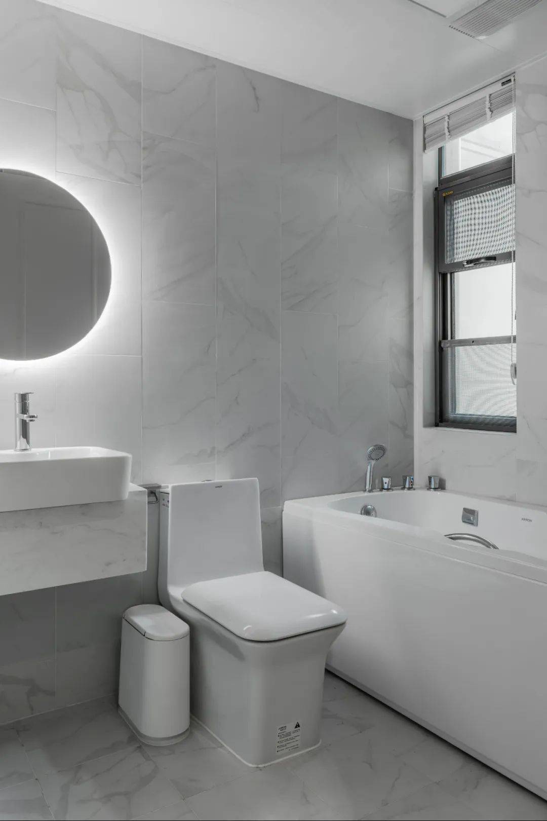 ▲卫生间以大理石质感的墙面地面砖,装饰洗手盆与马桶的基础,布置一个大浴缸,为主人提供了一个享受的泡浴体验,闲暇之余能泡上一个热水澡,是放松身心的好生活。
