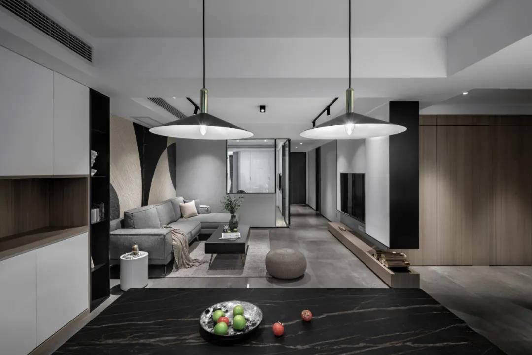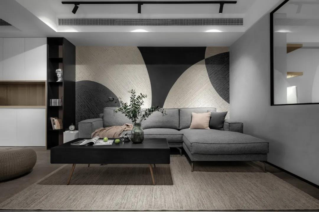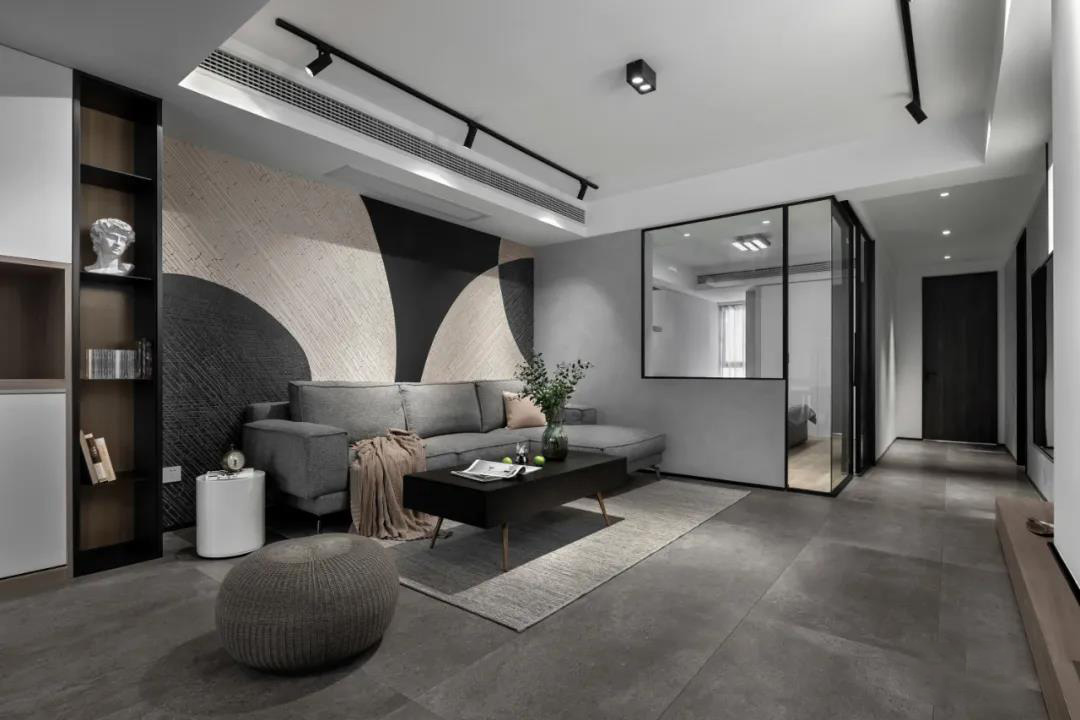 业主偏爱简约色调,以无彩度的灰为空间主调,再搭配米色和金属色,增添暖意。