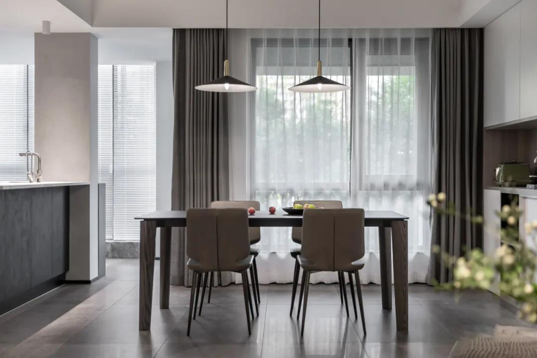 餐厅是连接客厅与厨房的过渡,现代风格的餐厅优雅简练,让家呈现一股精致感。打掉了厨房和餐厅之间的墙体,空间更加灵活通透,不受承重墙约束的自由。