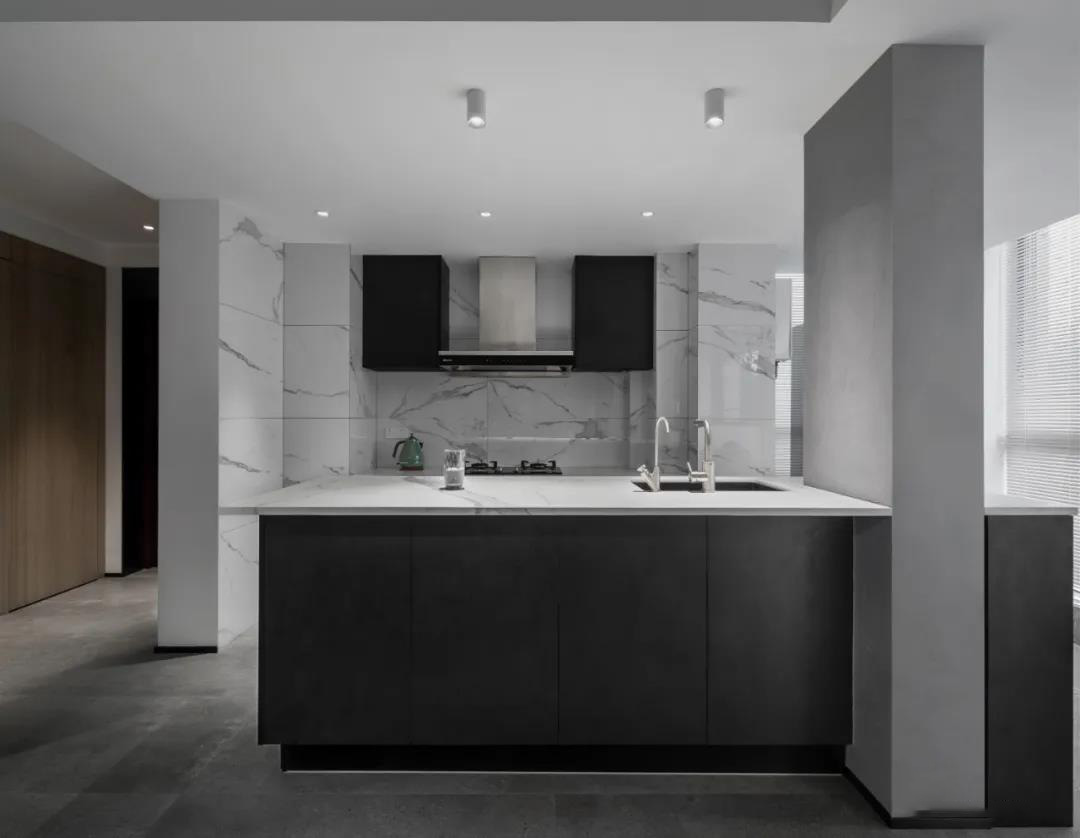 厨房是简约大气的黑白系,带来更强大的明亮感和开阔感。
