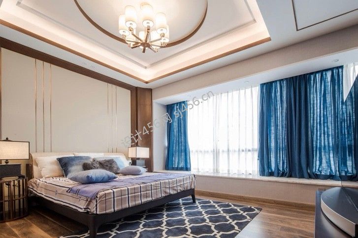 现代风格190平米三居室卧室背景墙装修效果图