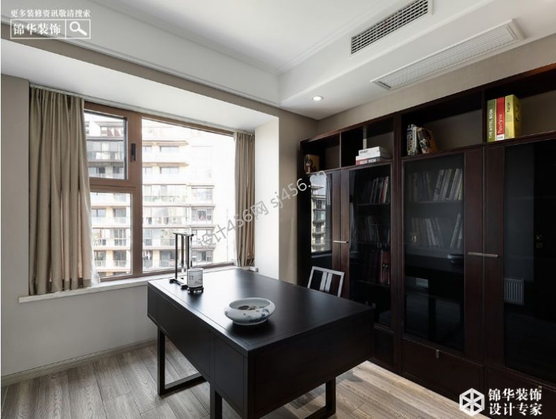 新中式140㎡三室两厅书房设计装修案例