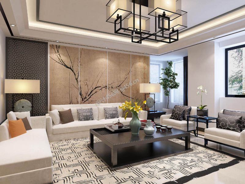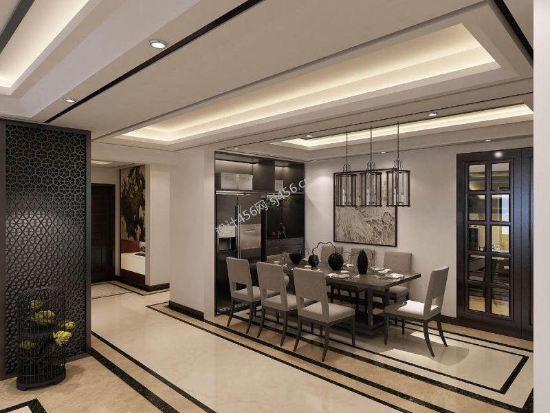 龙湖春江郦城220㎡四室二厅新中式风格装修案例风效果图