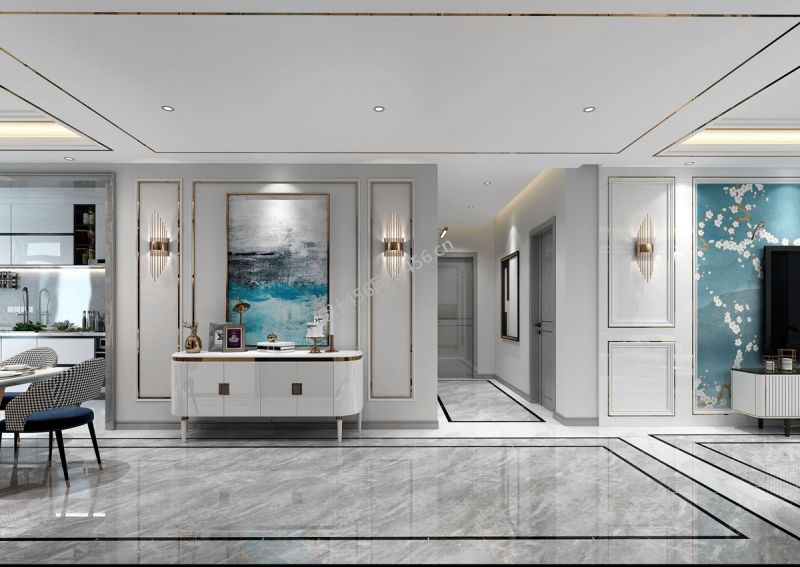 130平三居室现代轻奢走廊装修效果图