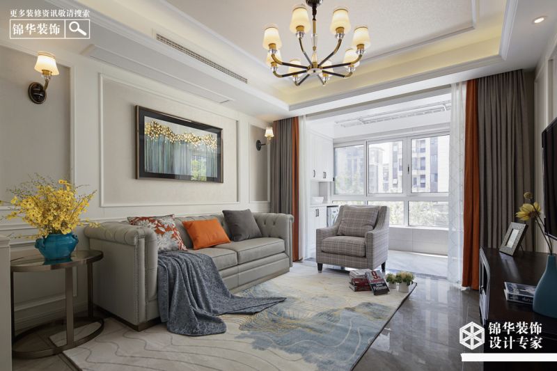 奥体新城海棠园90㎡二居室美式风格装修案例