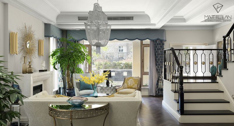 绿城泉悦春风美式轻奢风160平米别墅装修案例风效果图
