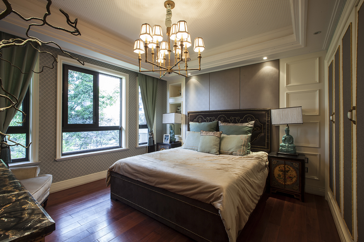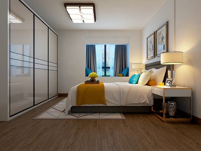 2、普通照明供起居室休息;而局部照明则包括供梳妆、阅读、更衣收藏等;装饰照明主要在于创造卧室的空间气氛,如浪漫、温馨等氛围。卧室的普通照明,在设计时要注意光线不要过强或发白,因为这种光线容易使房间显得呆板而没有生气,尽量选用暖色光的灯具,这样会使卧室感觉较为温馨。普通照明尽量装置两个控制开关,方便使用。除普通照明外,卧室宜设置局部组合照明,例如在睡床旁设置床头灯,方便阅读。阅读的灯光,要有适当的安排,因为灯光太强或不足,均会直接影响视觉,对眼睛造成损害;梳妆台和衣柜上的局部照明可方便整妆,梳妆台的照明,现在大多在镜子上方置灯,其实这样容易产生阴影,如在化妆镜两侧考虑装灯是最为明智的方法,但是要注意光线不宜过白或过强,尽量与自然光接近。