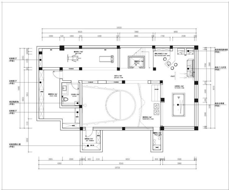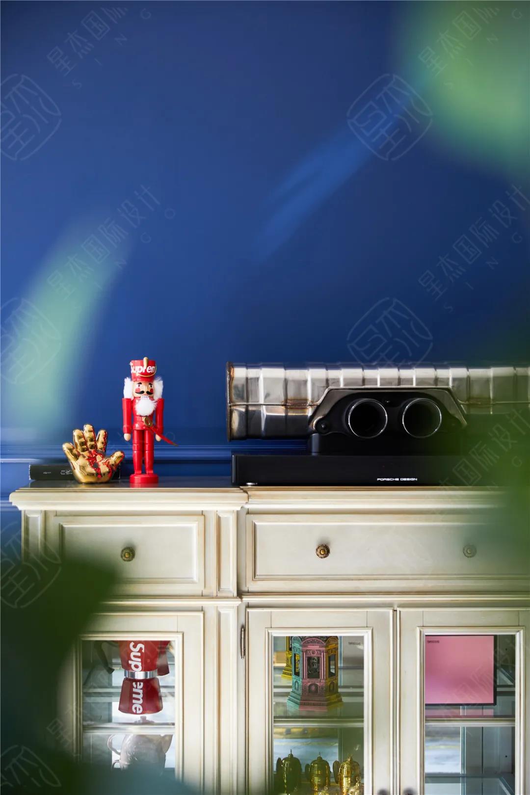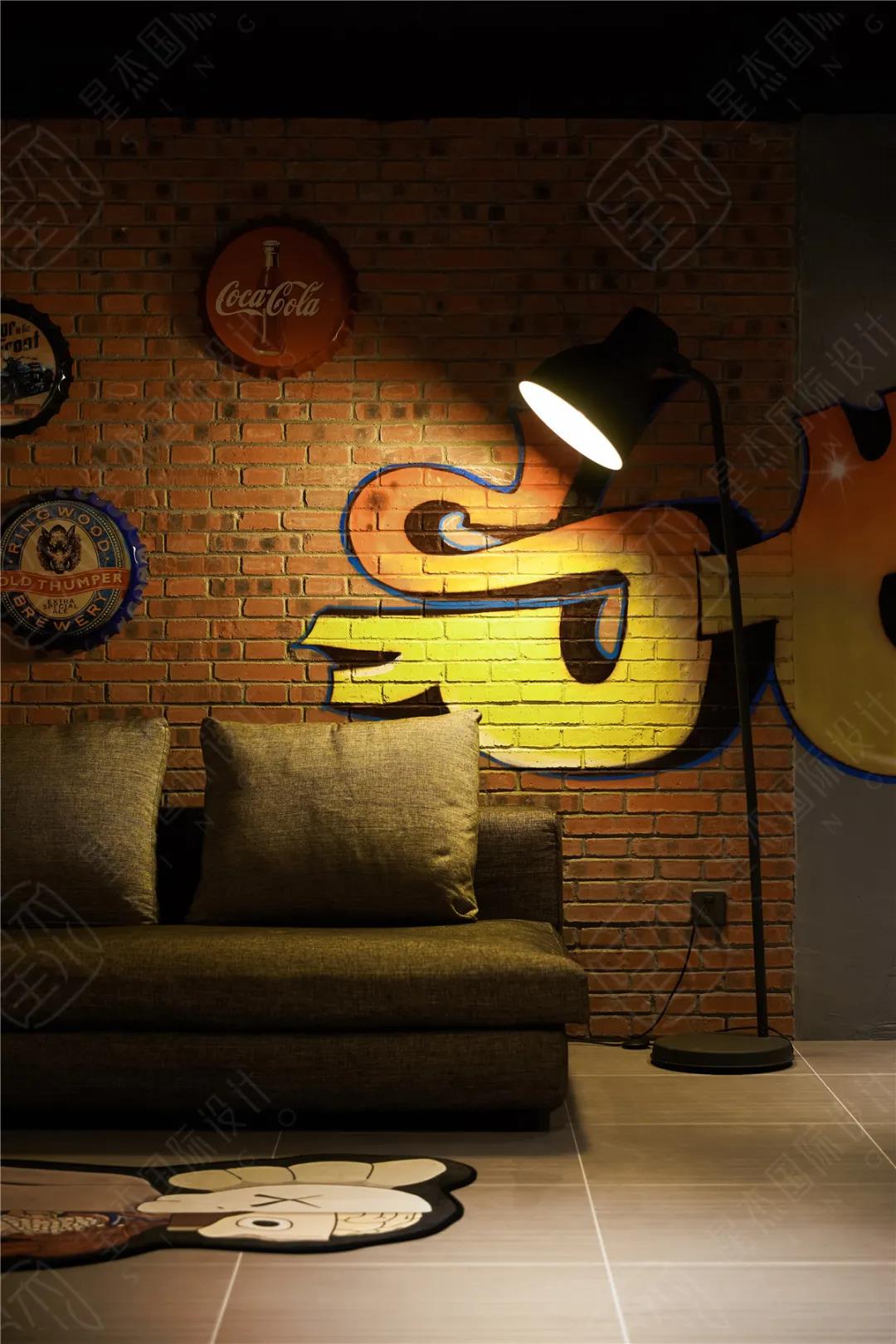 我把客户的点都综合起来,把一个家从负二楼到三楼整个串通起来。一楼到三楼为美式建筑家居,负一楼为太空飞船内部结构,负二楼则为美国的街头。定义主题为“停在美国街头的千年隼”。我是一个有情怀的设计师,但是这个情怀不是我的,是客户的!