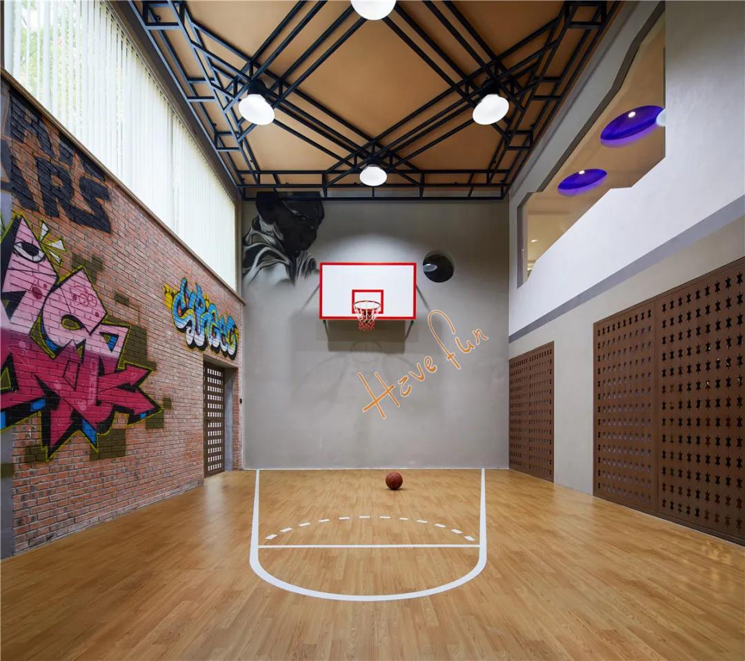 说到风格,我刚接到本案的时候,确实也纠结过。业主跟我描述的负一负二楼是作为重点设计区域,要有LOFT的感觉,功能需要室内篮球、电竞室、VR体验式、酒吧区、台球以及健身区。