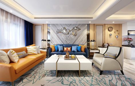 华润万象城幸福里126平美式风格三居室装修案例风效果图