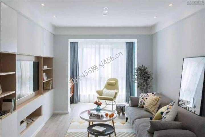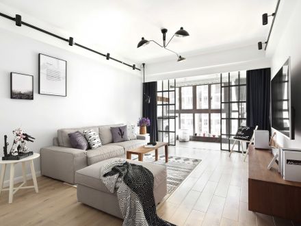 盛湖悦景北欧极简风格112平装修案例风效果图