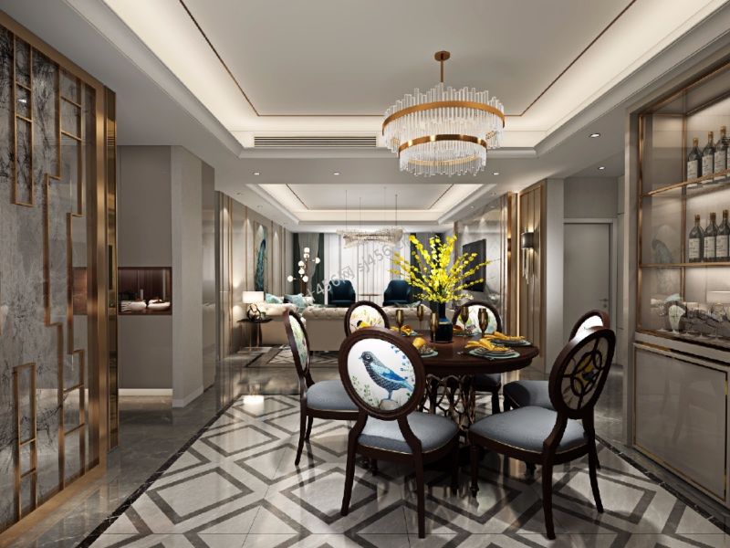 人和莱茵鹭湖别墅新中式风格装修案例风效果图