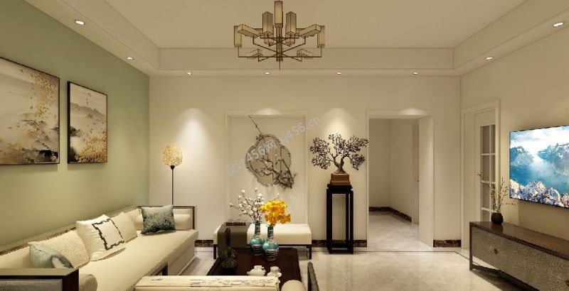 龙光玖珑湾新中式风格135平装修案例风效果图
