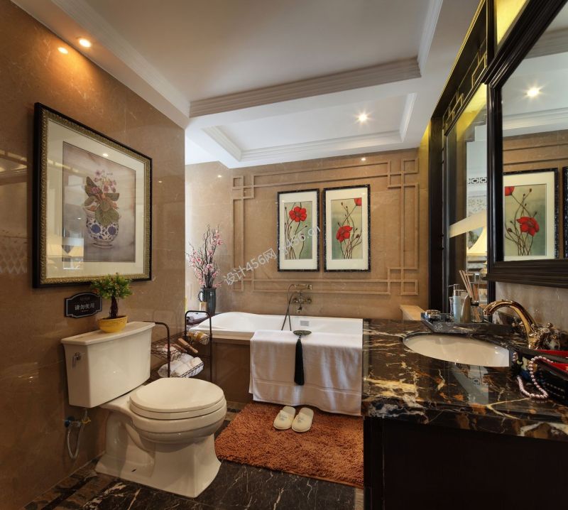 中式风格110平卫生间马桶效果图片