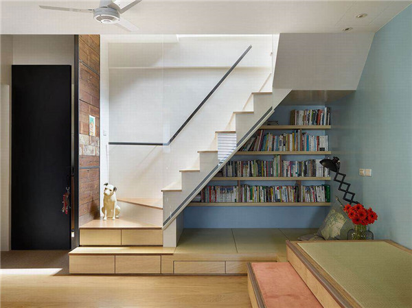 2.打通上下层。楼上采用软隔断,打通楼上楼下空间,既能增进互动,也能使横向视觉具有开阔感。